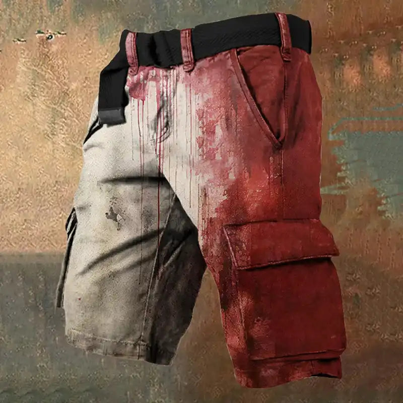 Men’s Imitation Pigment Gradient Inkjet Printed Cargo Shorts
